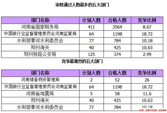 報(bào)名通過(guò)審核人數(shù)前十的職位主要集中在中國(guó)銀行業(yè)監(jiān)督管理委員會(huì)河南監(jiān)管局、河南省國(guó)家稅務(wù)局和水利部黃河水利委員會(huì)等部門(mén),具體信息如下: