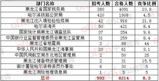 截至20日8時(shí),通過審核人數(shù)前三位的部門基本穩(wěn)定,仍舊是:黑龍江省國(guó)家稅務(wù)局、哈爾濱鐵路公安局、黑龍江出入境檢驗(yàn)檢疫局,三部門通過審核總?cè)藬?shù)達(dá)6915人,占通過審核總?cè)藬?shù)的84%。