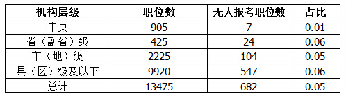 縣(區(qū))級(jí)及以下職位無(wú)人報(bào)考職位比例 中央最少