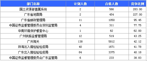 截至21日16時,招錄比例的職位為廣州海關政工一職,招錄1人,通過人數(shù)為1074人,報名通過審核人數(shù)前十的職位主要集中在廣州海關、深圳出入境邊防檢查總站、深圳海關等部門,具體信息如下: