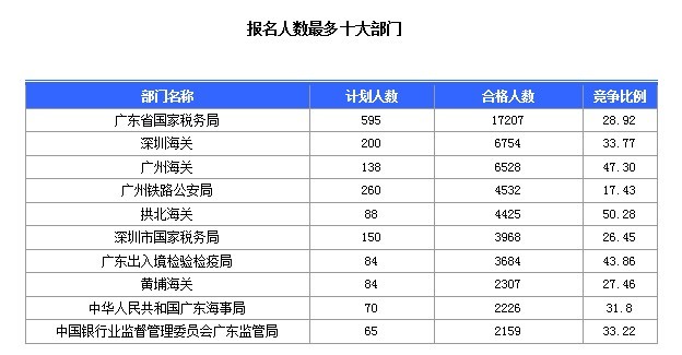 截至22日8時(shí),通過(guò)審核人數(shù)前三位的部門依次是:廣東省國(guó)家稅務(wù)局、深圳海關(guān)、廣州海關(guān),三部門通過(guò)審核總?cè)藬?shù)達(dá)30489人,占通過(guò)審核總?cè)藬?shù)的47%。