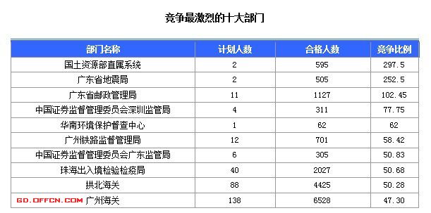 10月22日8時(shí),2015國(guó)家公務(wù)員考試報(bào)名進(jìn)入第8天。據(jù)中公教育統(tǒng)計(jì),國(guó)考職位中工作地點(diǎn)在廣東的所屬職位通過(guò)審核總?cè)藬?shù)為64549人,共有22個(gè)職位無(wú)人通過(guò)審核,平均競(jìng)爭(zhēng)比例為30.93??忌枳⒁膺@并不是最終的報(bào)名人數(shù),審核時(shí)間是截至2014年10月26日18:00。