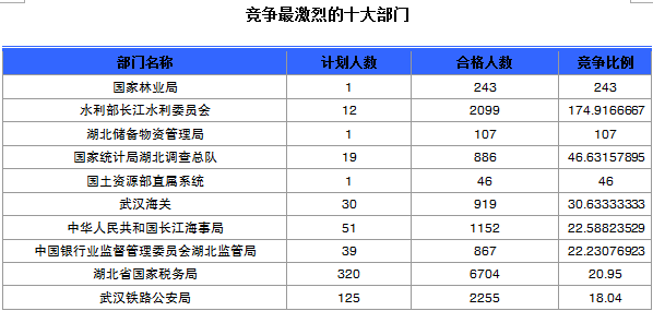 為幫助廣大考生更清晰的了解今日報名情況,中公教育整理了審核通過人數前十位的部門以及競爭比例最激烈的十大部門,供廣大考生參考: