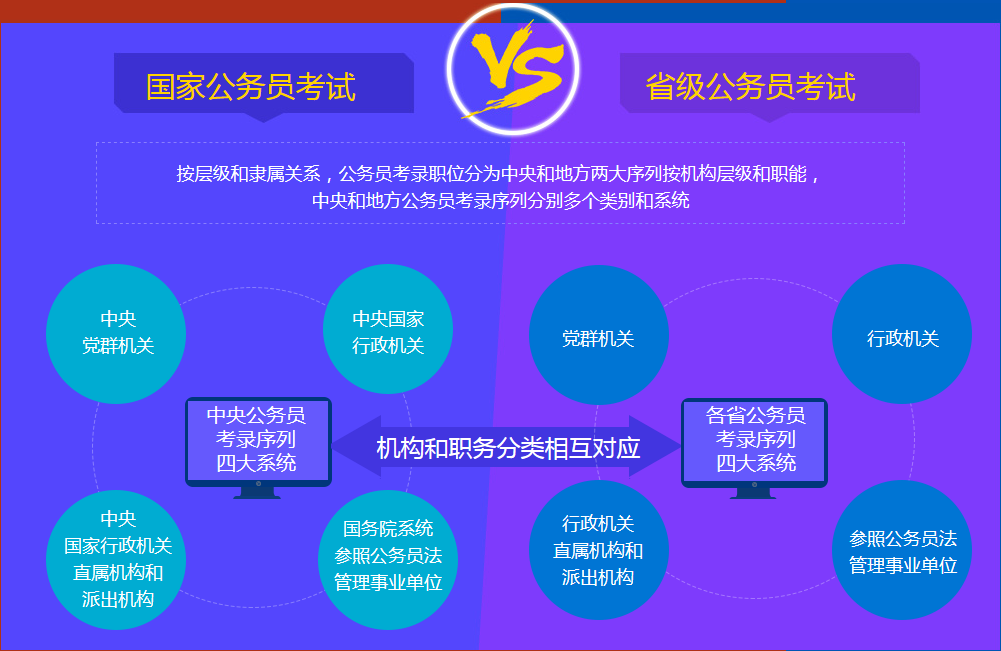 地方各省公務(wù)員考試與國(guó)家公務(wù)員考試的根本區(qū)別是由考試組織部門(mén)、招錄單位和地域范圍決定的。組織部門(mén)指從考錄計(jì)劃、考試到錄用等一系列程序的組織機(jī)構(gòu):