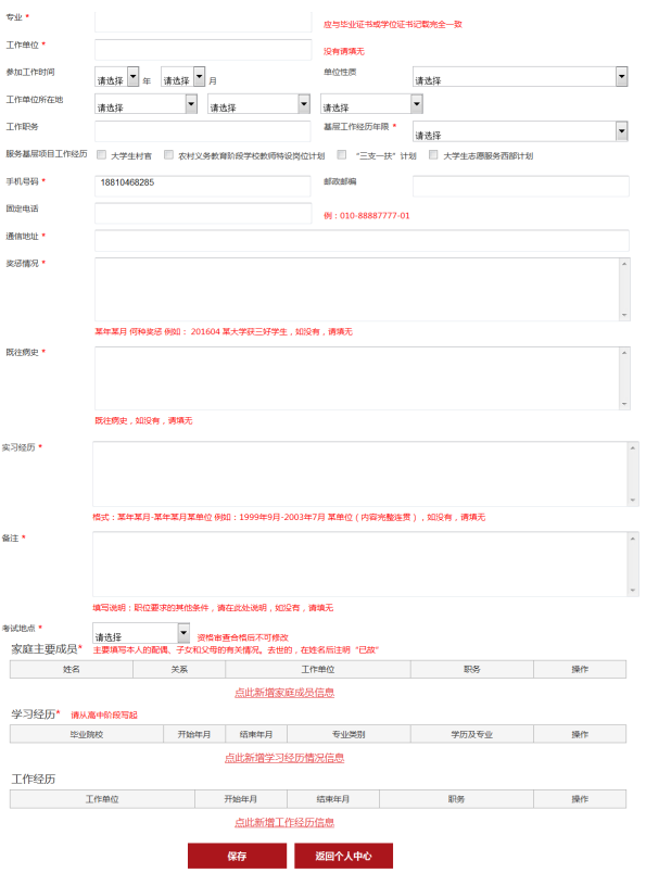 目前,中央機關(guān)及其直屬機構(gòu) 2019年度考試錄用公務員專題系統(tǒng)已經(jīng)開通,報名者在登陸系統(tǒng)進行正式報名前,考生有一件非常重要的事情要做,就是填寫詳細信息,詳細信息關(guān)系到審核環(huán)節(jié),故填寫要準確,真實。很多考生在填寫詳細信息的時候會遇到一些麻煩,不知道如何填寫,導致效率慢或者不能保存,在這里,中公教育專家將手把手教考生如何填寫詳細信息。