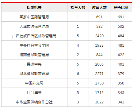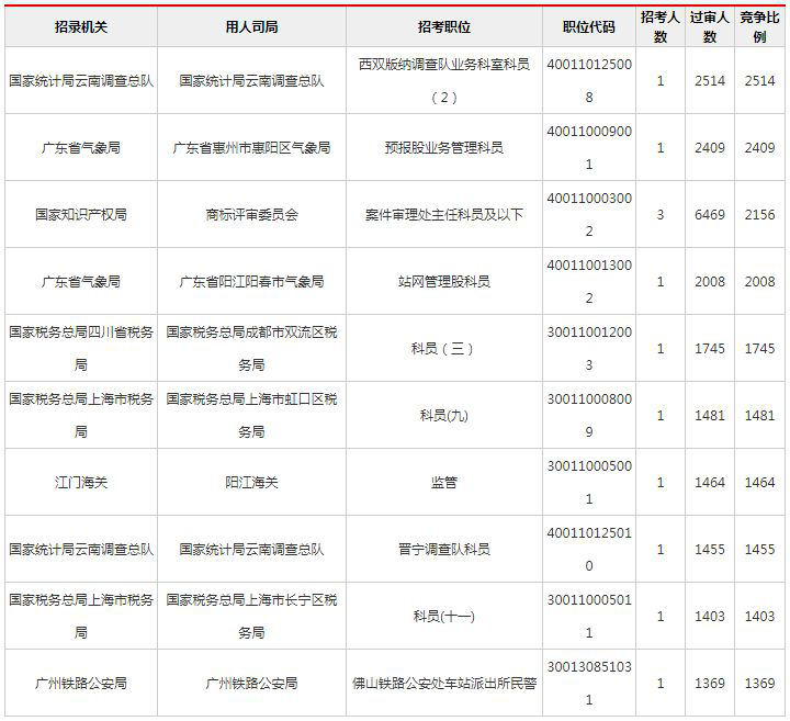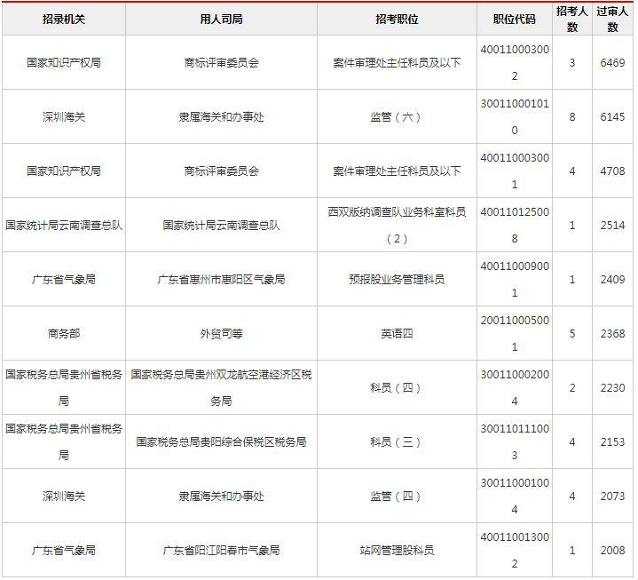 2019國考報名過審人數(shù)競爭最激烈前十職位