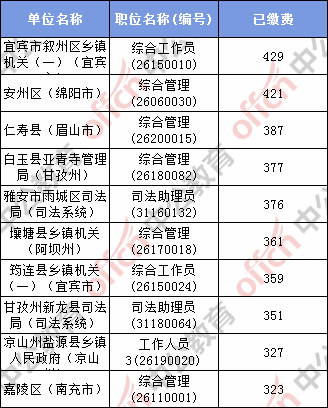 報(bào)名繳費(fèi)人數(shù)最多職位(前十)
