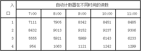 博物館四個(gè)入口處自動(dòng)計(jì)數(shù)器的讀數(shù)(見下表)