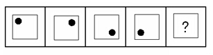 (答案:B。黑點(diǎn)在正方形中順時針移動。在第5個圖形中,應(yīng)該正好移動到左上角。)