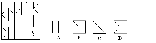 第一種題型:圖形推理。每道題給出一套或兩套圖形,要求報(bào)考者認(rèn)真觀察找出圖形排列的規(guī)律,選出符合規(guī)律的一項(xiàng)。