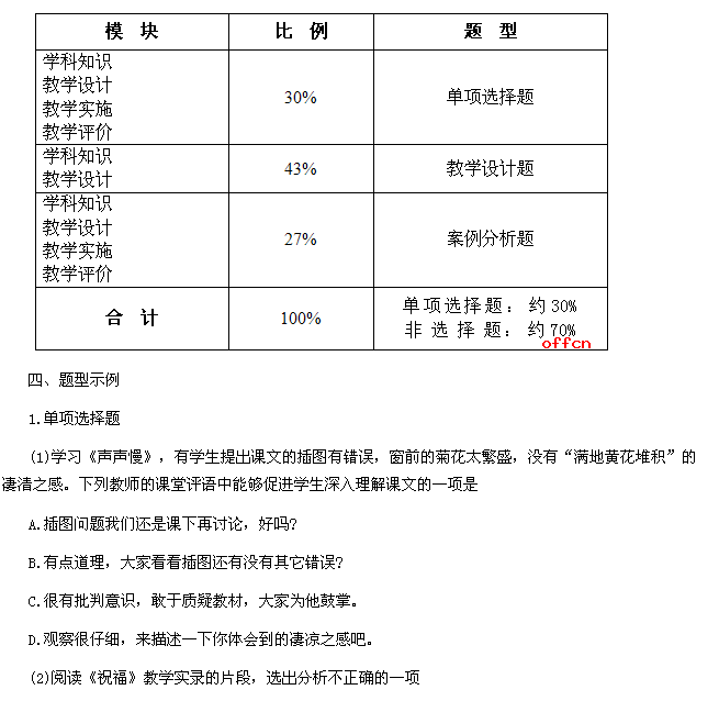 《語文學科知識與教學能力》(高級中學)筆試大綱