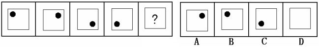 (答案:B。黑點在正方形中順時針移動。在第5個圖形中,應(yīng)該正好移動到左上角。)