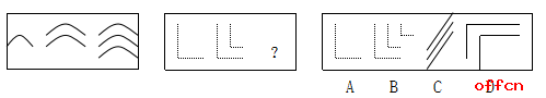 解答:正確答案為B。因?yàn)橹挥蠦能使兩套圖形具有相似性,僅僅元素不同,一個(gè)是實(shí)的曲線,一個(gè)是虛的直線,但兩組圖形中元素的排列規(guī)律完全相同。