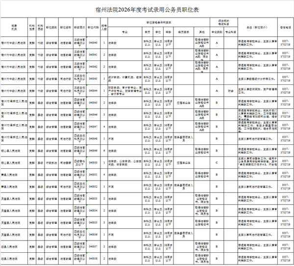 2026年宿州法院計(jì)劃公開招錄公務(wù)員41名公告