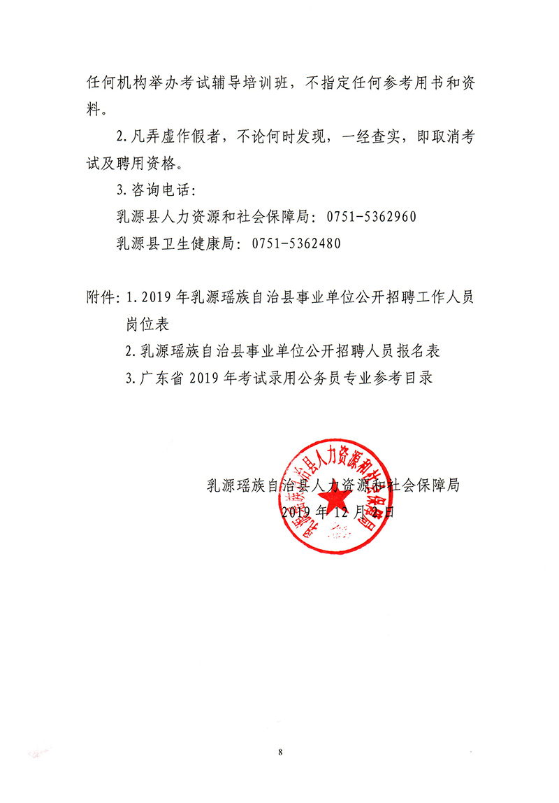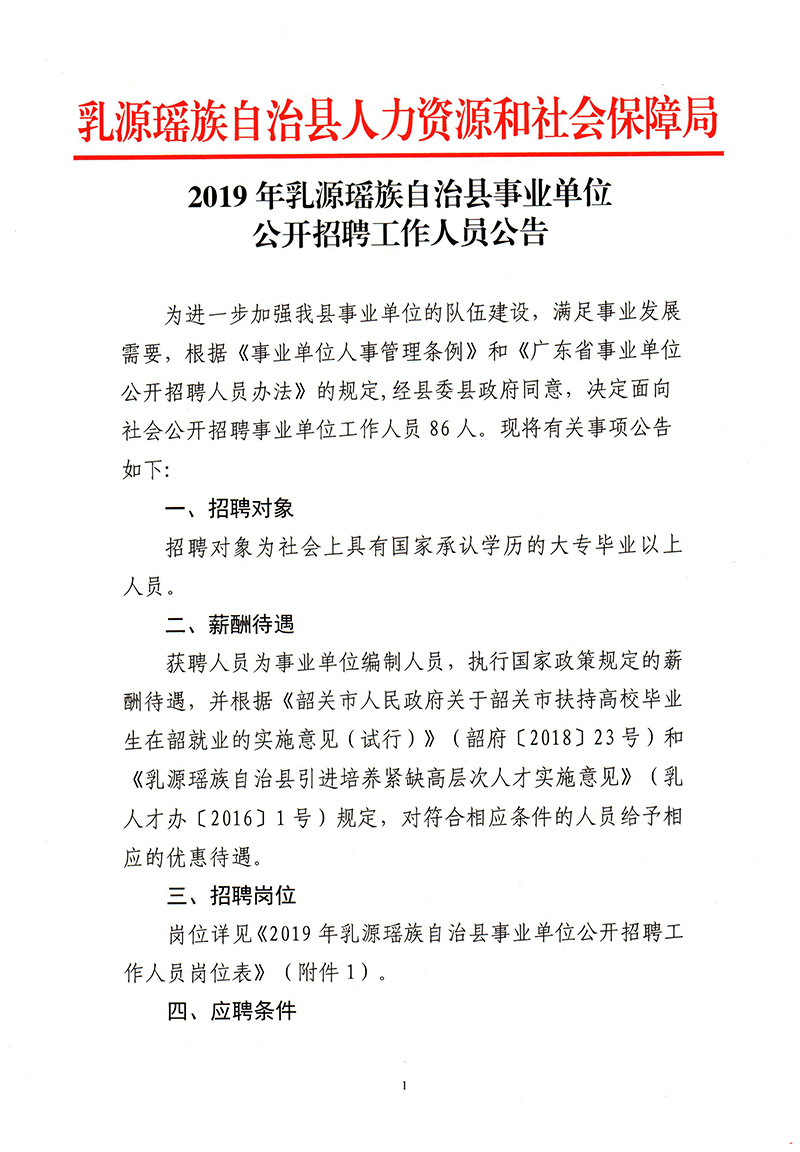 附件1:2019年乳源瑤族自治縣事業(yè)單位公開(kāi)招聘工作人員崗位表
