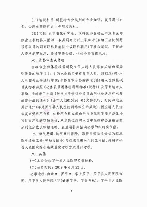 【同工同酬】2020年曲靖羅平縣人民醫(yī)院招聘編外人員公告78人