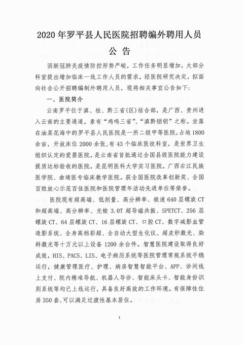 原標(biāo)題:2020年羅平縣人民醫(yī)院招聘編外聘用人員公告