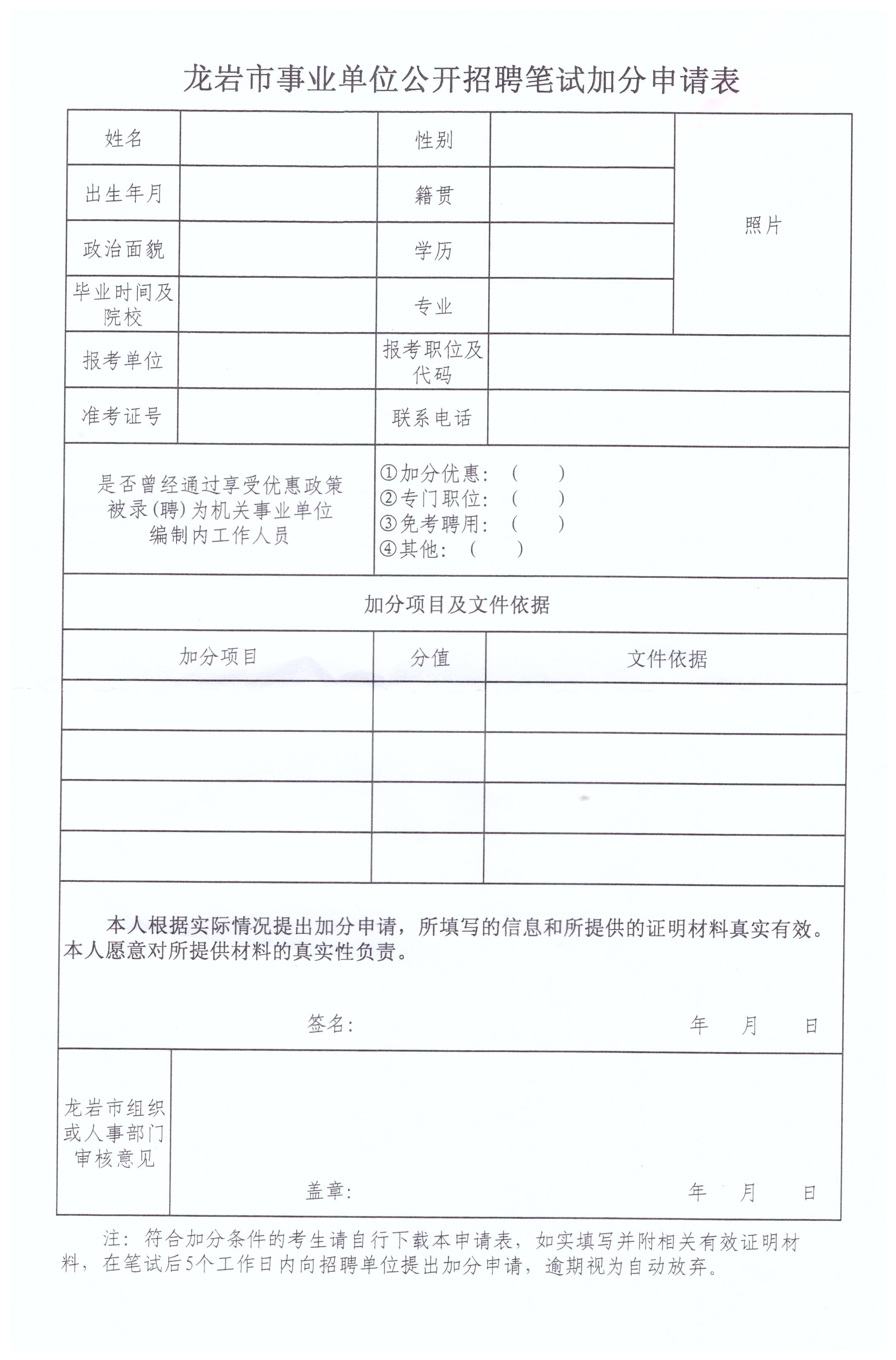 2015福建長(zhǎng)汀縣市直事業(yè)單位招聘筆試加分有關(guān)事項(xiàng)通知