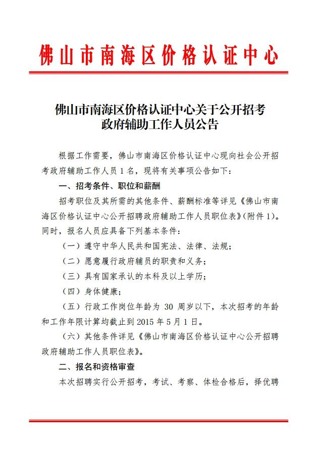原標(biāo)題:佛山市南海區(qū)價(jià)格認(rèn)證中心關(guān)于公開(kāi)招考政府輔助工作人員公告
