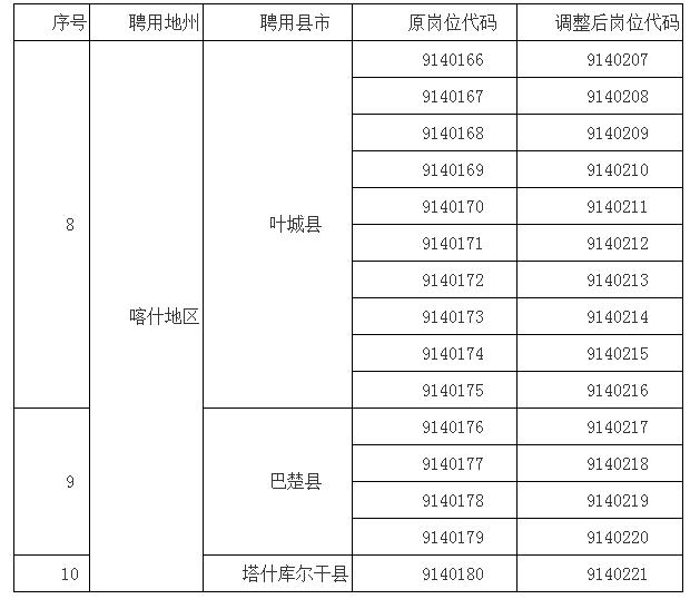 具體崗位代碼調(diào)整情況見下表: