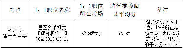 2015廣西梧州市選調(diào)生錄用面試1:1職位所在考場平均分通知