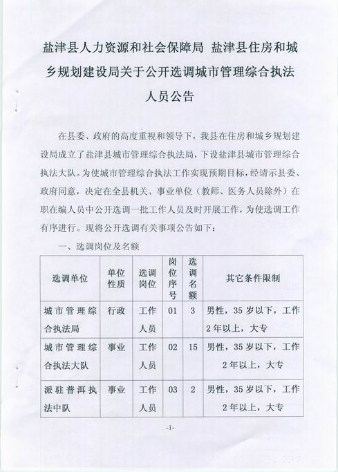 2015云南鹽津縣選調(diào)城市管理綜合執(zhí)法人員公告【招28名】