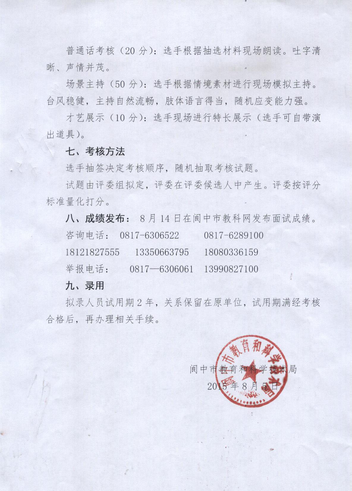 2015四川閬中市教育和科學(xué)技術(shù)局本系統(tǒng)內(nèi)招聘教育電視臺(tái)主持人2人公告