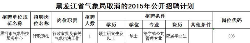 原標(biāo)題:黑龍江省氣象局關(guān)于取消黑河市氣象科技服務(wù)中心公開(kāi)招聘工作人員崗位的通知