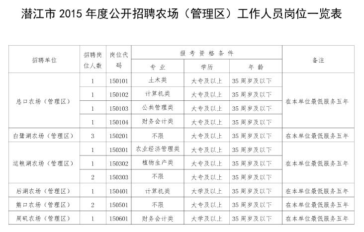 原標(biāo)題:2015年潛江市招聘15名農(nóng)場(chǎng)(管理區(qū))工作人員簡(jiǎn)章