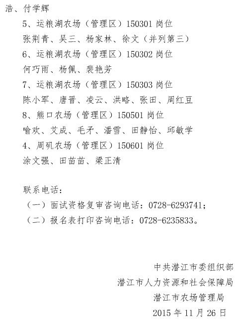 2015湖北潛江市招聘農場(管理區(qū))人員面試資格復審公告