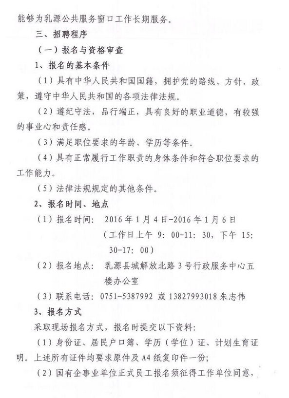 2015廣東乳源縣辦事大廳窗口專職人員招聘公告【招8人】