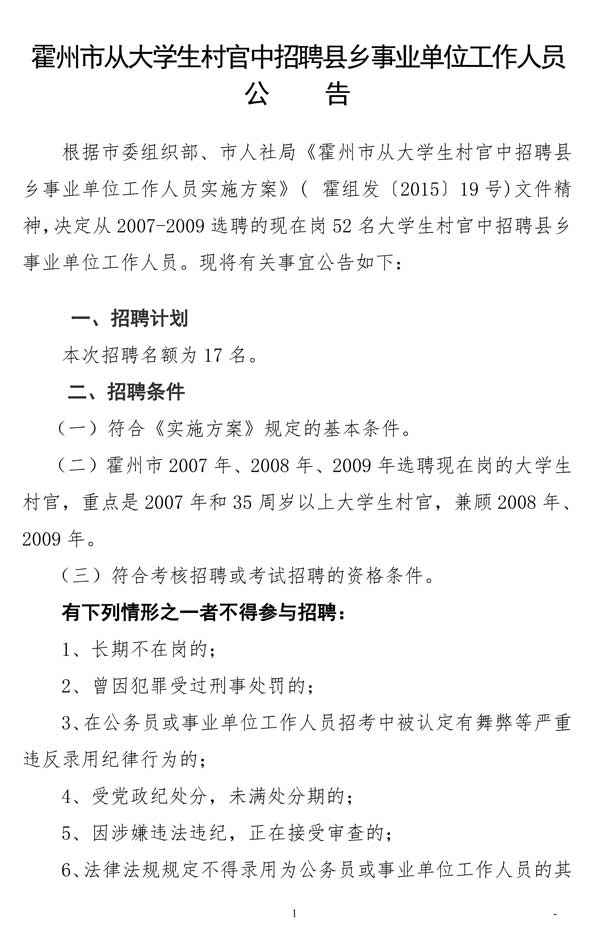 2016山西霍州市縣鄉(xiāng)事業(yè)單位招聘17人公告(從大學生村官中)【招17人】
