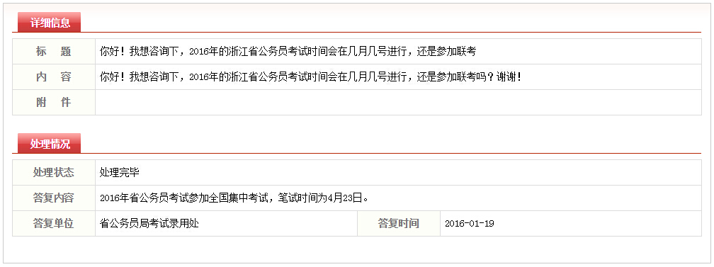 下面圖片是一位考生咨詢浙江省人力資源與社會局的問題及浙江省公務(wù)員局考試錄用處的回復(fù):