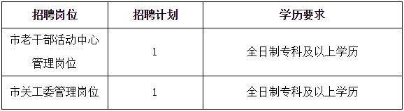 因工作需要,市委老干部局擬招聘2名工作人員?,F將有關事項公告如下: