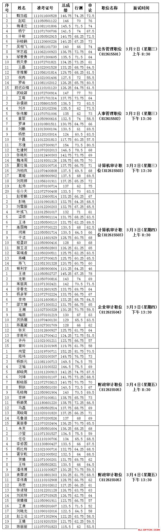 2016年北京市審計(jì)局公務(wù)員考試面試公告