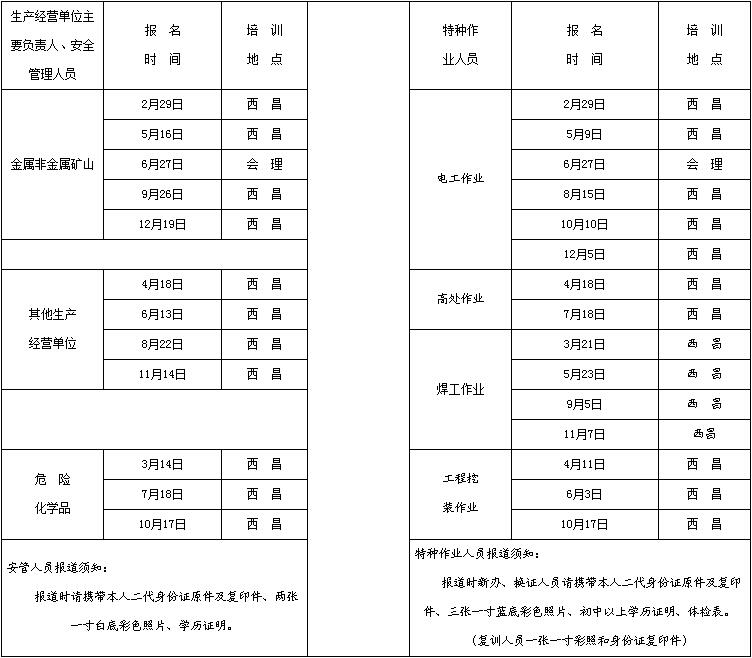 2016四川涼山州安全技術檢測中心安全管理人員、特種作業(yè)人員培訓時間安排公告
