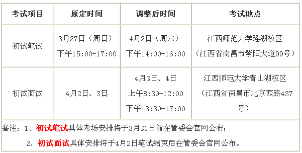 2016江西南昌臨空經(jīng)濟(jì)區(qū)管委會(huì)調(diào)整初試考試時(shí)間緊急通知