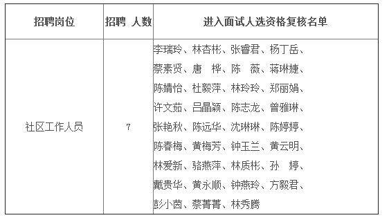 2016福建濱海街道辦事處社區(qū)人員招聘面試資格復(fù)審公告