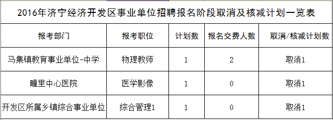 2016山東濟寧經濟開發(fā)區(qū)事業(yè)單位招聘報名階段取消及核減計劃