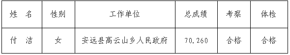 根據(jù)《贛州市國土資源局下屬事業(yè)單位面向全市機(jī)關(guān)事業(yè)單位公開考選工作人員公告》,經(jīng)過報名、資格審查、筆試、面試、考察、體檢等程序,經(jīng)研究,確定付潔同志為贛州市國土資源局下屬事業(yè)單位公開考選工作人員擬遞補(bǔ)錄用人員,現(xiàn)予公示。