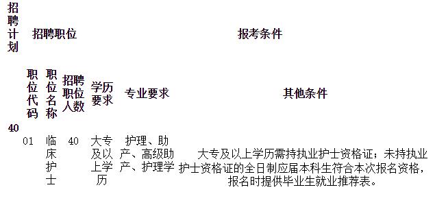 本次仁懷市人民醫(yī)院面向社會(huì)計(jì)劃公開(kāi)招聘護(hù)理人員40名, 職位一覽表如下: