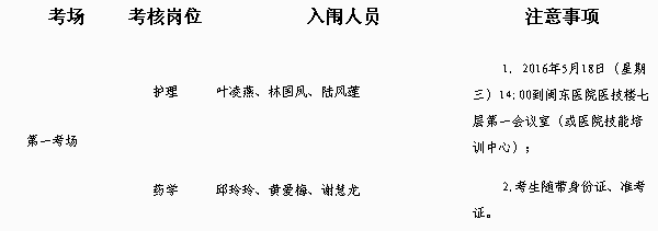 閩東醫(yī)院2016年上半年公開招聘工作人員專業(yè)技能考核為第一組0032護理,第二組0033藥學(xué),第一組、第二組均在第一考場。專業(yè)技能考核為專業(yè)技能操作1題,相關(guān)專業(yè)知識測試2題。