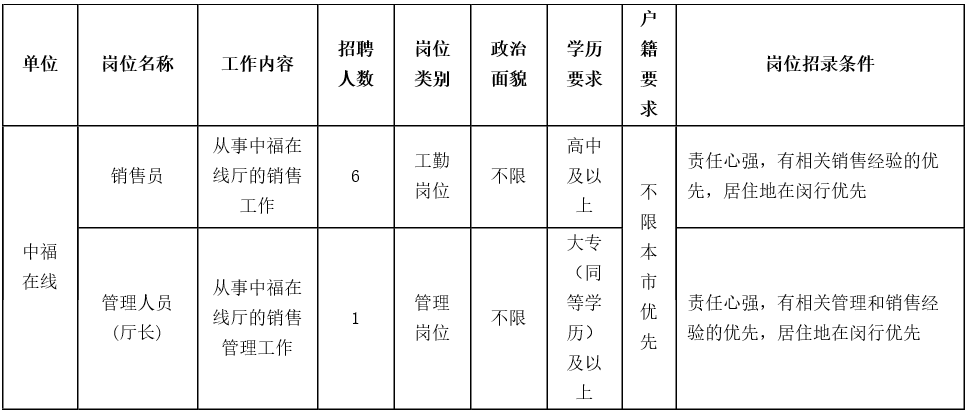 按照“公開、平等、競爭、擇優(yōu)”的原則,閔行區(qū)福利彩票服務(wù)中心公開招聘編制外工作人員7名。