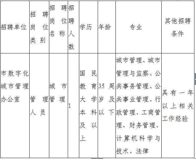 昆明市數字化城市管理辦公室面向社會公開招聘1名符合上述條件的高等院校畢業(yè)生,年齡在35周歲及以下,即:1981年1月1日(含)以后出生。普通招生計劃全日制院校應屆(2014-2016年)畢業(yè)生不受年齡限制。