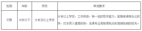 招聘法制輔助人員1人,負責我局法制檔案管理、執(zhí)法數(shù)據(jù)報送、聽證記錄工作,協(xié)助辦理行政復議、訴訟等工作。