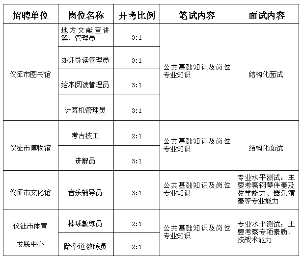 筆試采取閉卷考試方式,按照規(guī)定的開考比例進行(見下表)。主要測試公共基礎(chǔ)知識及報考崗位專業(yè)知識??荚嚥恢付ㄝo導(dǎo)用書,采用百分制計分。筆試具體時間、地點及相關(guān)要求以筆試準(zhǔn)考證為準(zhǔn)。