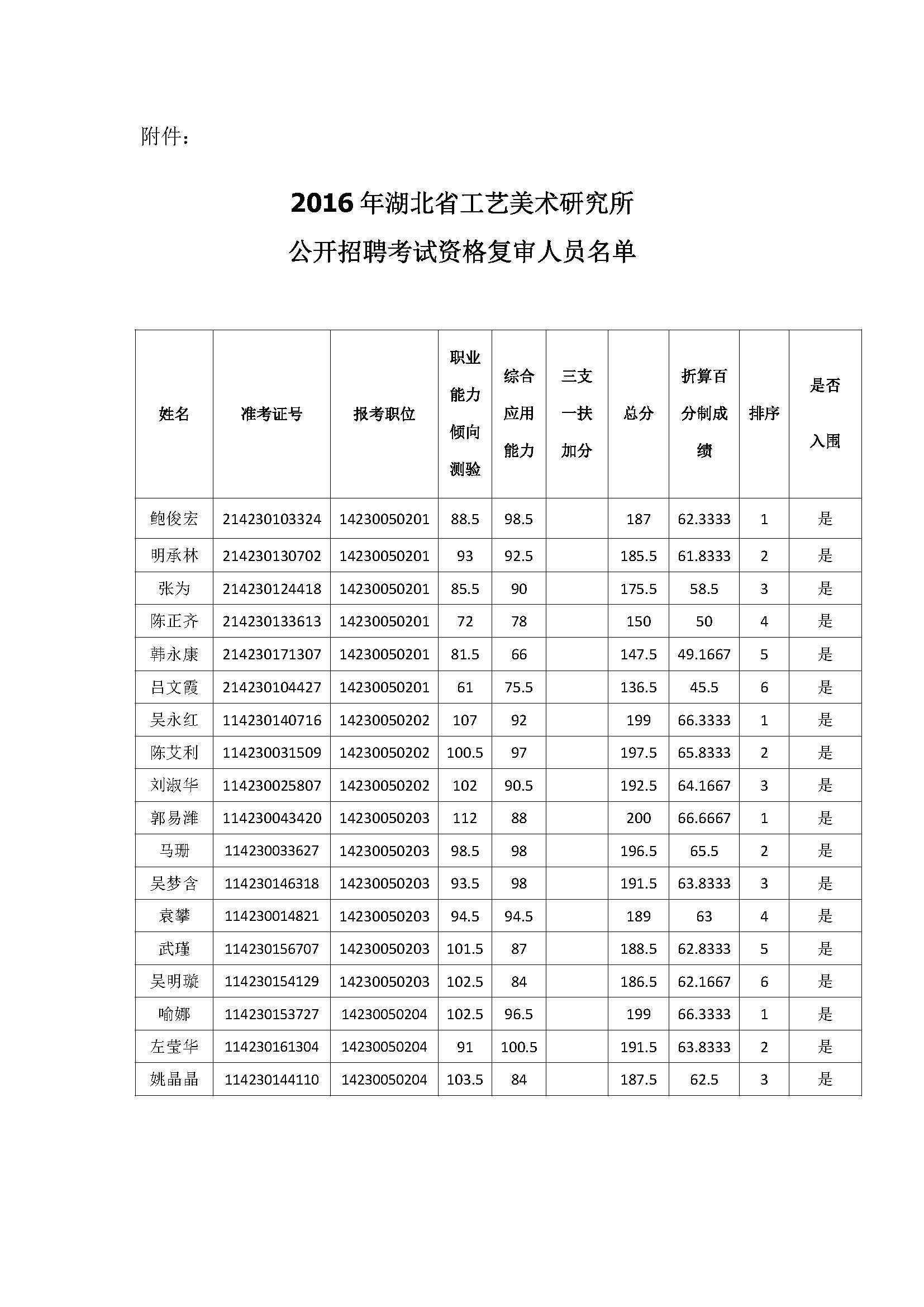 附:2016年湖北省工藝美術(shù)研究所公開招聘考試資格復(fù)審人員名單