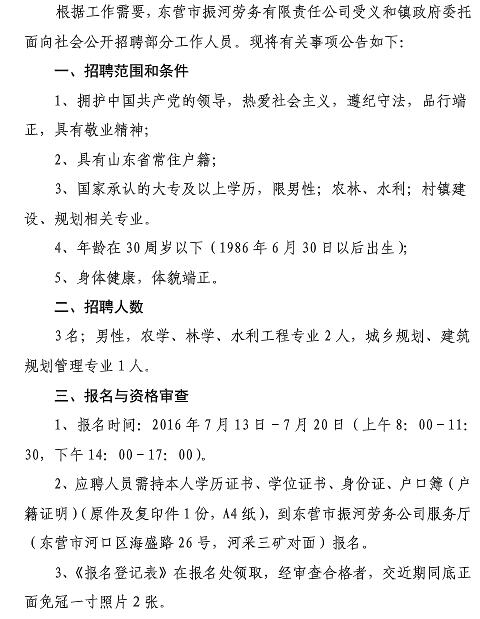 2016山東河口區(qū)義和鎮(zhèn)招聘公告【招3人】