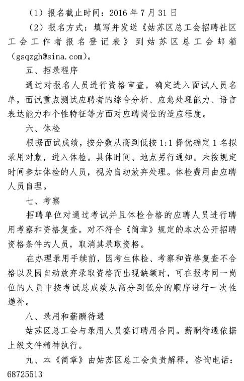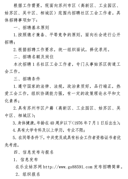 2016江蘇姑蘇區(qū)總工會(huì)招聘社區(qū)工會(huì)工作者公告【招1人】