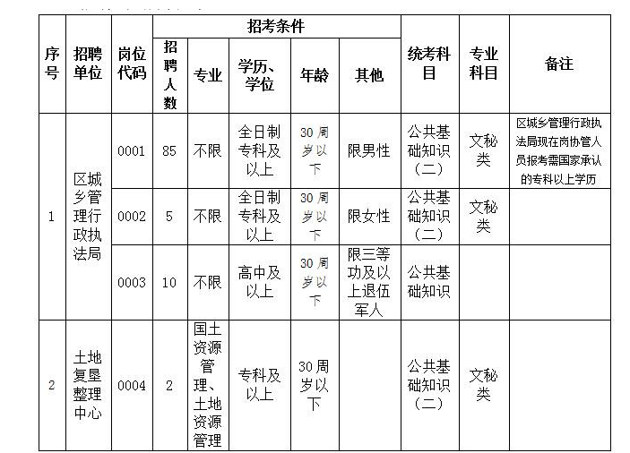 經(jīng)區(qū)政府批準(zhǔn),2016年度潁泉區(qū)城鄉(xiāng)管理行政執(zhí)法局面向社會(huì)公開招聘編外工作人員100名;潁泉區(qū)土地復(fù)墾整理中心面向社會(huì)公開招聘編外工作人員2名。